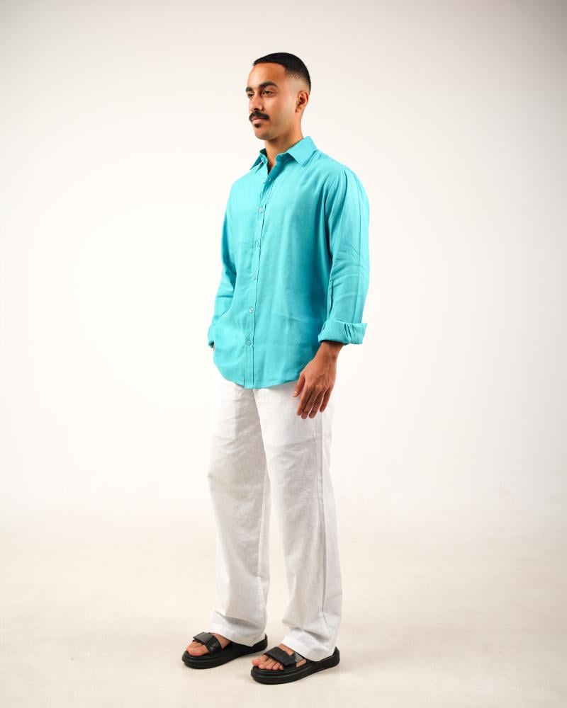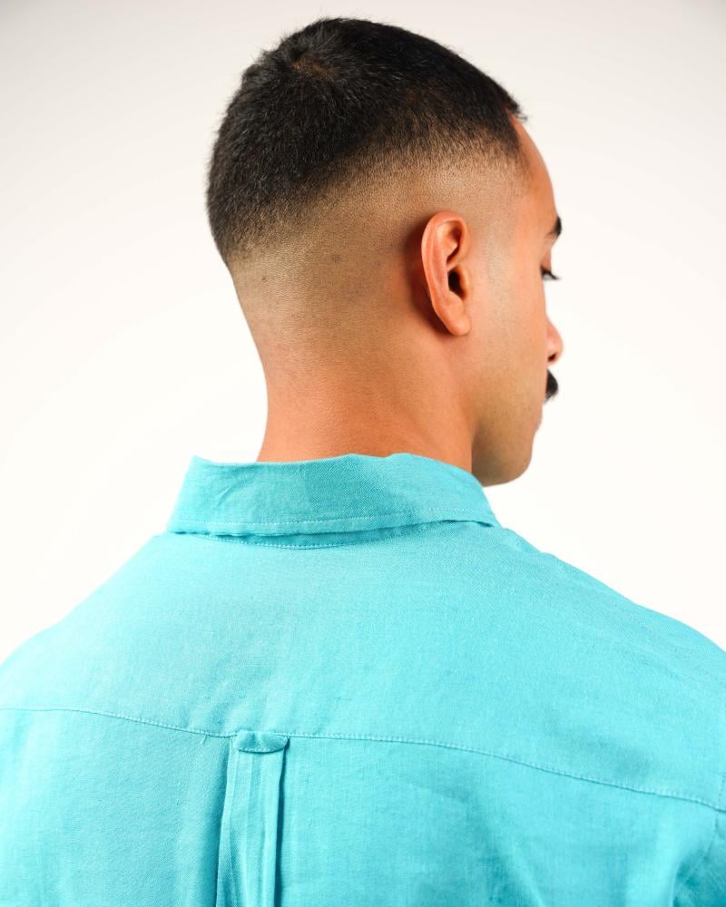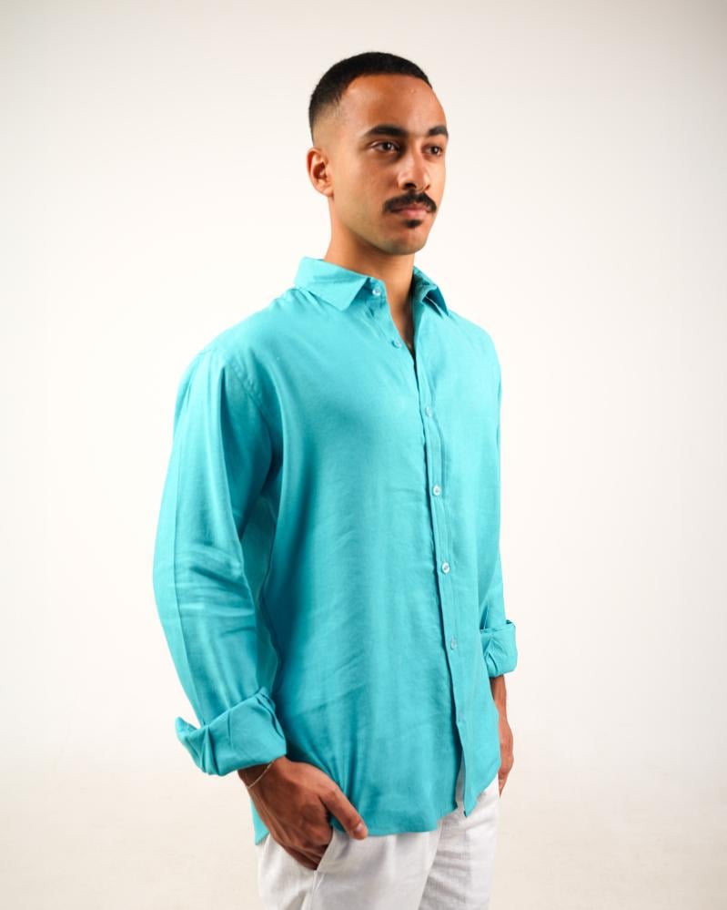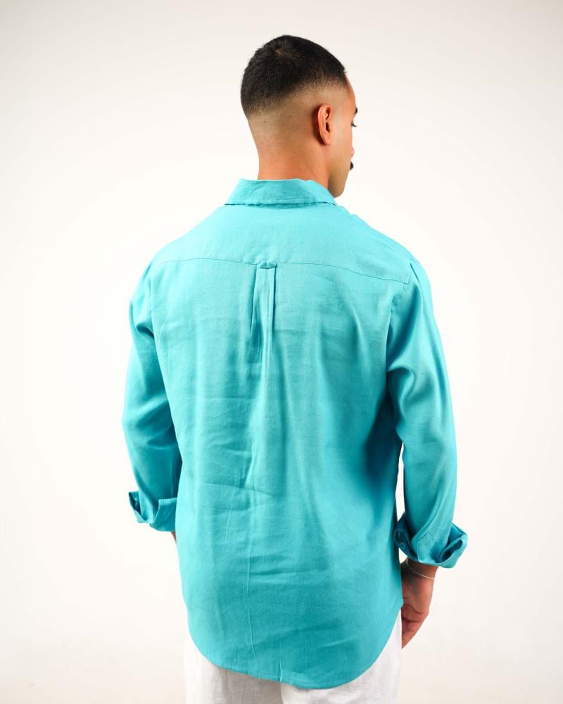 100% natural linen shirt , Long-sleeved, TURQUOISE COLOR